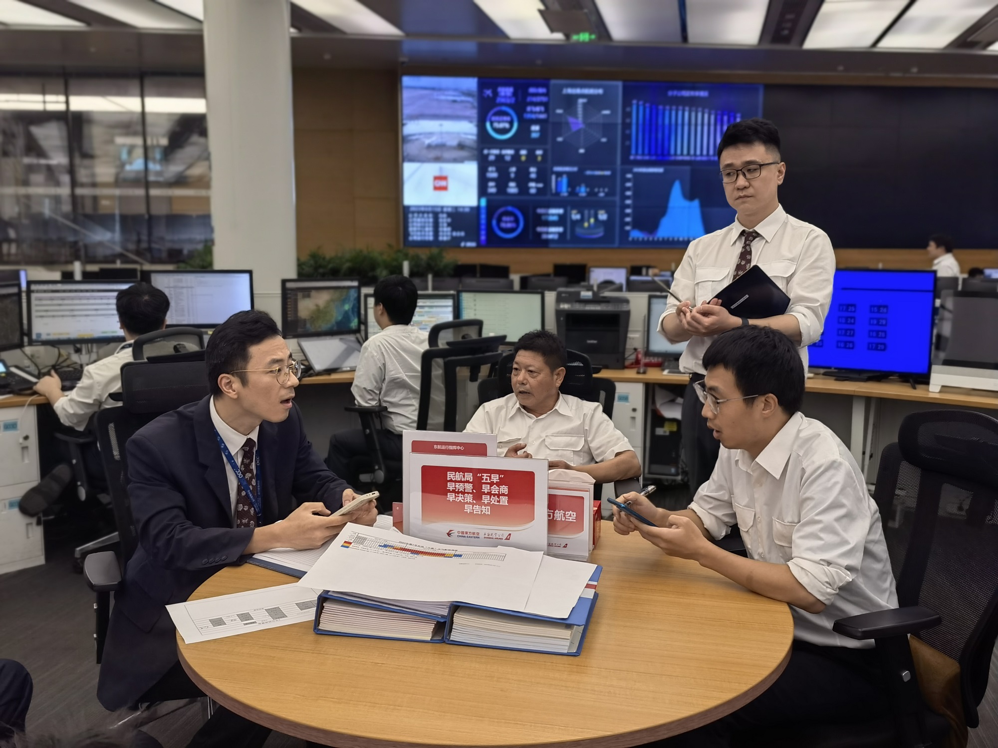 旺季的航班生產量大,夏季各種臺風、雷雨等惡劣天氣發(fā)生頻率又高,再加上航班運行容易受到流控等方方面面的影響,不正常航班和應急事件會比日常多。這時,東指中心的存在就猶如一個“CPU”,對各種情況進行分析、預案、決策,同時協(xié)調、指揮著各專業(yè)崗位“分工合力、齊頭并進”,好讓數(shù)千個航班有序運行。