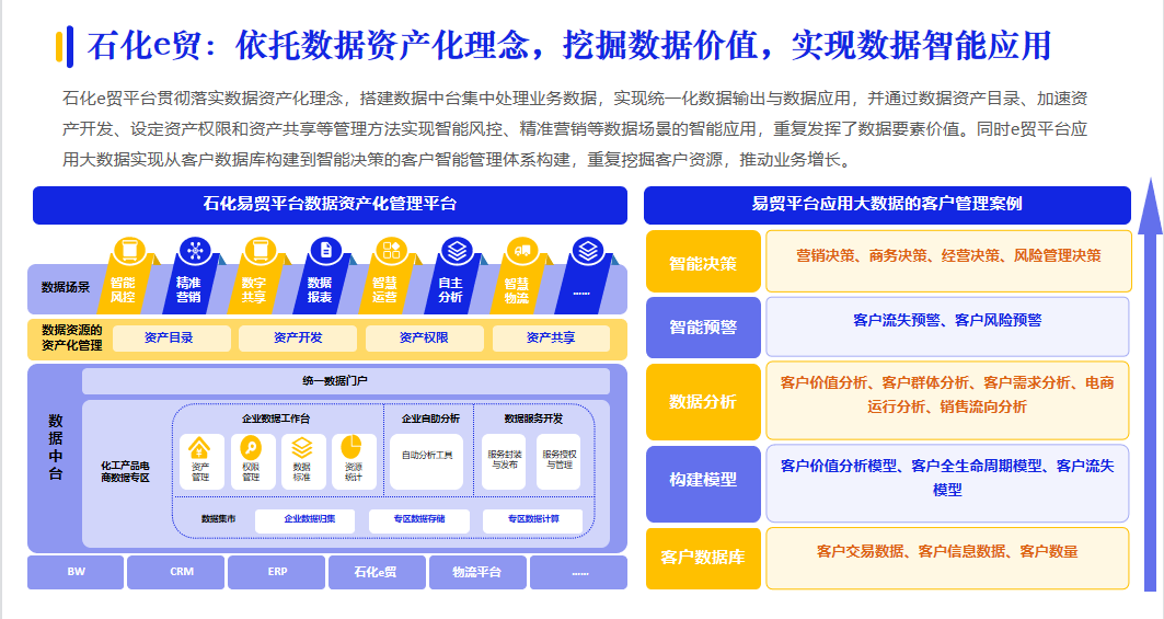 數字化采購帶來三大供應鏈模式變革:商業(yè)模式、管理模式和服務模式。核心企業(yè)依托資源聚集優(yōu)勢,將其資源整合能力和管理能力向外開放和輸出,提供開放的平臺,實現盈利,引起商業(yè)模式變革;同時,數據價值逐漸被釋放,實現數據驅動的供應鏈管理模式的變革;例如:石化e貿落實數據資產化理念,搭建數據中臺集中處理業(yè)務數據,實現數據智能應用。