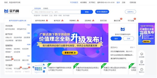 數(shù)字供應(yīng)鏈產(chǎn)品理念整體升級后,以“客戶為中心”的服務(wù)宗旨,通過“兩大解決方案”助力建筑供應(yīng)鏈行業(yè)內(nèi)企業(yè)進行數(shù)字化轉(zhuǎn)型及升級,圍繞平方網(wǎng)、平方招采等平臺,讓采購業(yè)務(wù)合規(guī)化、專業(yè)化、系統(tǒng)化,讓建材供應(yīng)商降低營銷成本和風(fēng)險,增強企業(yè)的競爭力。