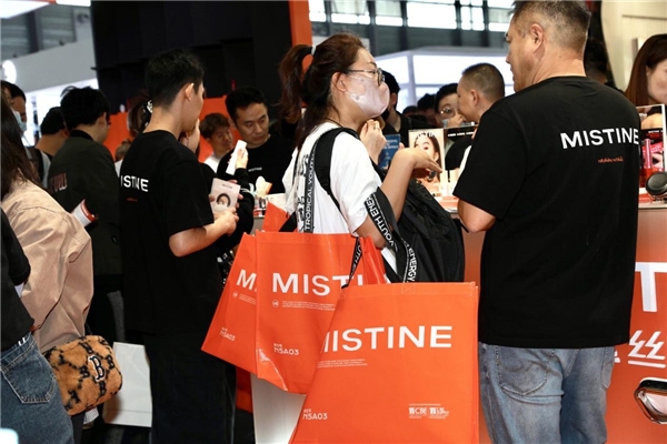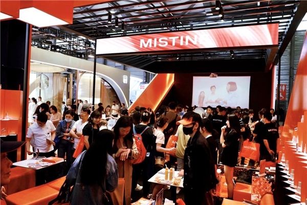 在N5主題展館的Mistine蜜絲婷展區(qū),記者看到,展位以字母“M”為空間創(chuàng)意,以活力橙作為主創(chuàng)色,處處充滿熱帶植物和光的元素,展現(xiàn)出“遇見光、去追光、成為光”的青春態(tài)度和“泰酷辣”的品牌風格,是現(xiàn)場最受歡迎的展區(qū)之一。