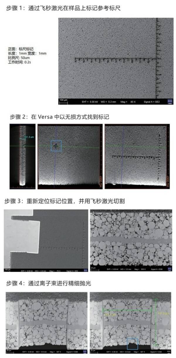 Versa + FIB-SEM + Fs-laser 關(guān)聯(lián)測(cè)試 來(lái)源:蔡司