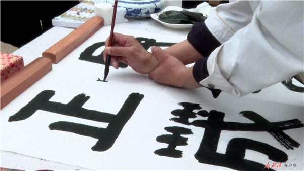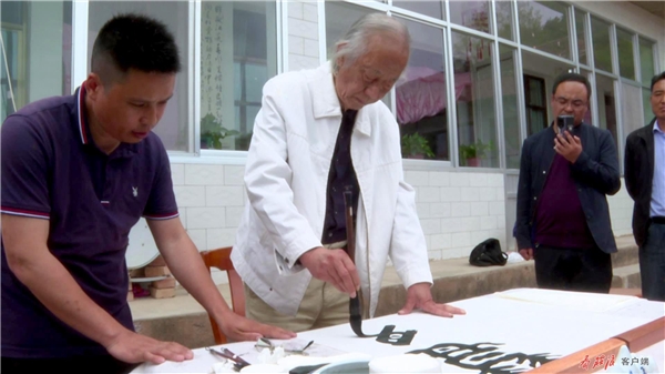 在農(nóng)家小院,閻正正在聚精會神地揮毫潑墨,他在筆墨的運用上別出心裁、匠心獨運,流暢的線條蒼勁有力,書法作品淋漓盡致地展現(xiàn)于尺幅之上。談起他創(chuàng)作的靈感,閻正說,“莊浪歷史悠久、文化底蘊深厚、森林植被覆蓋率高,儼然一幅天然山水畫。莊浪縣云崖寺自然風光秀麗,石窟藝術(shù)精美,有遠山、有水庫、有寺廟,它完全具備中國畫的每一個條件?!?/p>