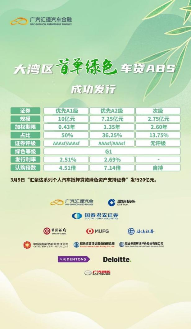 廣汽匯理汽車金融成功發(fā)行大灣區(qū)首單綠色車貸ABS 2023-03-14