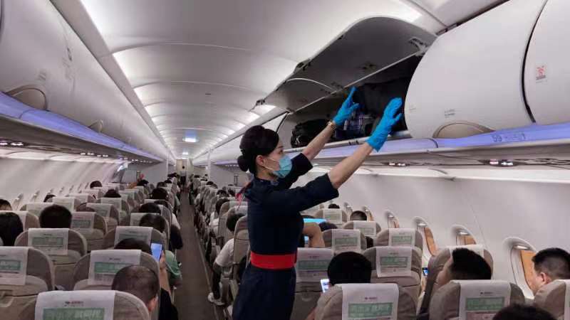 暑運(yùn)期間最大的特點(diǎn)就是客座率高,東航近期日均客座率都在80%左右;此外就是天氣復(fù)雜多變。相較于平日,在航前準(zhǔn)備過程中,金智音和乘務(wù)組們近期會(huì)格外關(guān)注目的地天氣情況、客座率、旅客構(gòu)成,特別是行李托運(yùn)情況等?!翱妥噬蟻砹?#xff0c;上機(jī)的行李自然就多了。為了妥善放置旅客的行李,我們一方面會(huì)提前在保障群里同地面緊密溝通監(jiān)控行李數(shù)量,一方面也會(huì)在航前準(zhǔn)備會(huì)上對乘務(wù)員們擺放行李提前進(jìn)行詳細(xì)部署?!苯鹬且粢矔?huì)在機(jī)艙門口細(xì)心觀察,當(dāng)看到旅客行李箱較多,她還會(huì)以機(jī)上廣播的方式做好提醒,建議并幫助旅客將小型背包放置在座椅擋桿下方,確保每件行李都能放置妥善。