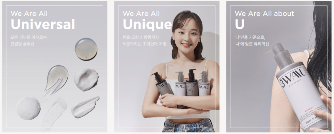 3WAAU是韓國COSMAX科絲美詩今年3月推出的定制型化妝品平臺。WAAU取自We Are All Unique的縮寫,包含了面向個人化·細分化化妝品市場的服務(wù)理念。