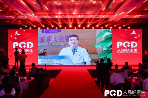 人民好醫(yī)生公益典禮大會(huì)主席,中國(guó)工程院院士、中國(guó)醫(yī)師協(xié)會(huì)常務(wù)副會(huì)長(zhǎng)、北京清華長(zhǎng)庚醫(yī)院院長(zhǎng)董家鴻為大會(huì)作了視頻致辭。他代表人民好醫(yī)生組委會(huì)向本屆61位年度“人民好醫(yī)生”表示熱烈的祝賀。贊揚(yáng)他們有精誠(chéng)為業(yè)、仁愛為醫(yī)的高尚醫(yī)德;有精益求精、一絲不茍的敬業(yè)精神;有關(guān)愛患者、廉潔自律的職業(yè)操守。