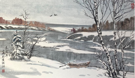劉子輿作品《雪后》30x50cm,2022年(文華閣書畫院供圖)