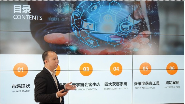 關于云展動力及鴻威元宇宙會客廳,鴻威集團云展動力負責人陳良玉介紹道,云展動力精準獲客平臺歷經(jīng)多年打磨,現(xiàn)已集合了數(shù)字孿生云展系統(tǒng)、大數(shù)據(jù)獲客系統(tǒng)、精準邀約系統(tǒng)、客戶管理系統(tǒng),形成了有效的智能獲客生態(tài)。針對“幫助企業(yè)獲客”的核心問題,云展動力重磅推出了元宇宙會客廳,能夠完美復刻企業(yè)實景,讓精準客戶不受時空限制,隨時隨地進入云展廳參觀,完成逛展會、看產(chǎn)品、游產(chǎn)線等實時互動操作,助力參展企業(yè)實現(xiàn)高效獲客,為國際采購商尋求優(yōu)質(zhì)供應服務商創(chuàng)造條件。