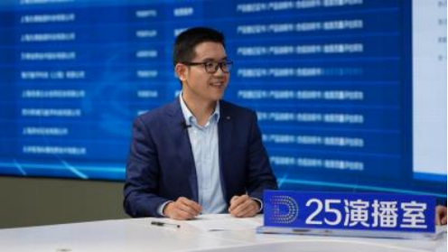 上海數(shù)據(jù)交易所演播室訪談現(xiàn)場。合合信息數(shù)據(jù)事業(yè)部副總經(jīng)理沈東輝