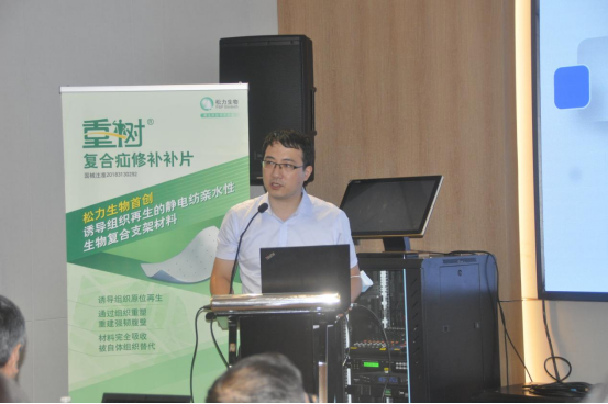 松力生物聯(lián)合創(chuàng)始人、副總經理楊莉分享了松力生物的軟組織誘導性生物材料的研究進展,她介紹稱,松力生物可再生復合疝修補補片由松力生物自主研發(fā)的靜電紡親水性軟組織誘導性生物材料制成,此外,分享了這種新型復合生物材料在動物實驗中成功誘導骨骼肌、韌帶、肩袖、子宮壁、腸壁組織再生的研究成果。