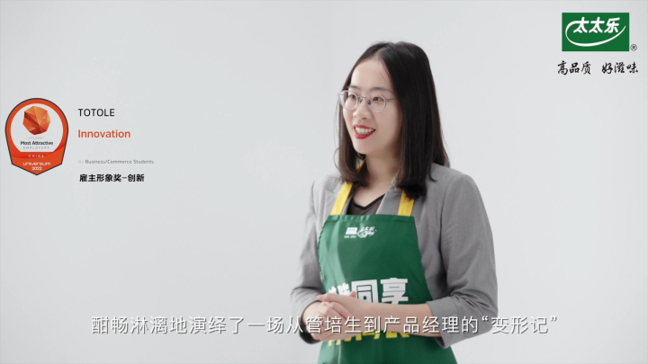 產(chǎn)品經(jīng)理Grace:太太樂(lè)作為中國(guó)雞精品類的領(lǐng)“鮮“者,其創(chuàng)立之初就自帶創(chuàng)新的基因。34年后的今天,太太樂(lè)正在開(kāi)發(fā)更多滿足消費(fèi)者需求的新產(chǎn)品,我也有幸成為了其中的參與者。在工作中創(chuàng)造不同的同時(shí),得益于定制化的職業(yè)發(fā)展路徑,我成功從一名管培生蛻變成了獨(dú)當(dāng)一面的產(chǎn)品經(jīng)理,獨(dú)立負(fù)責(zé)一個(gè)產(chǎn)品系列和領(lǐng)導(dǎo)一支團(tuán)隊(duì)。作為這種鼓勵(lì)創(chuàng)新、擁抱人才的文化的受益者,我也會(huì)在接下來(lái)的團(tuán)隊(duì)管理中支持晚輩的新點(diǎn)子,為他們提供職業(yè)發(fā)展指導(dǎo),助力他們成為更好的自己。