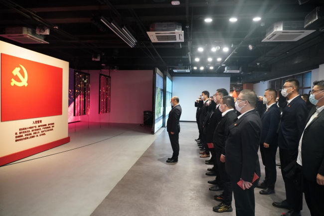 在中共蘇州獨(dú)立支部舊址,黨員們走過“燃血青春”中共蘇州獨(dú)立支部史跡陳列展示區(qū)、“青春我行”實(shí)踐活動(dòng)體驗(yàn)區(qū)、“青春劇場(chǎng)”多功能廳,通過聆聽革命先烈的光輝事跡、沉浸式體驗(yàn)革命年代的艱苦歷程,系統(tǒng)回顧了中共蘇州獨(dú)立支部的創(chuàng)建背景、發(fā)展過程及影響意義,深刻感悟中共蘇州獨(dú)立支部的發(fā)展史、革命史和奮斗史,在恢宏磅礴的歷史畫卷中感悟著共產(chǎn)黨人堅(jiān)定的理想信念。隨后,在“青春誓言”宣誓區(qū),全體黨員在牛春雷的帶領(lǐng)下面對(duì)黨旗莊重宣誓,重溫入黨誓詞,切實(shí)用紅色文化滋養(yǎng)初心、淬煉品行。