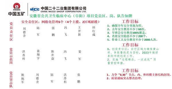 一名黨員就是一面旗幟,為充分發(fā)揮黨員先鋒模范作用,針對目前項目大干“春耕”階段,全體黨員職工放棄節(jié)假日休息,堅守在施工現(xiàn)場。據(jù)中國二十二冶江蘇公司阜陽醫(yī)院項目部執(zhí)行經(jīng)理劉德含介紹,項目部每天進(jìn)行一個班前例會講話,提醒施工當(dāng)天的質(zhì)量風(fēng)險點,安全風(fēng)險點,對工人安全施工進(jìn)行警示教育,后續(xù)過程中項目部加強(qiáng)現(xiàn)場一個巡查現(xiàn)場技術(shù)人員,班組長,現(xiàn)場監(jiān)理,監(jiān)理人員業(yè)主代表共同組織班前的巡查施工過程中的巡查,提醒工人規(guī)避相關(guān)的風(fēng)險點,確保工人施工的安全,為確保夜間施工正常推進(jìn)。黨支部組織了黨員安全夜查活動,每晚由一名黨員帶領(lǐng)各班組長深入現(xiàn)場對一線施工情況進(jìn)行檢查;劃分黨員安全責(zé)任區(qū),比標(biāo)準(zhǔn)、比進(jìn)度、比質(zhì)量、比安全,調(diào)動激發(fā)黨員積極性,增強(qiáng)責(zé)任感和安全意識,牢固樹立“安全第一”的思想;邀請勞務(wù)隊農(nóng)民工黨員代表列席黨支部組織的講安全專題黨課、安全生產(chǎn)公開課等活動,筑牢思想防線、強(qiáng)化政治定位、調(diào)動工作主動性、增強(qiáng)集體榮譽感,確保安全生產(chǎn)工作的穩(wěn)步推進(jìn)。