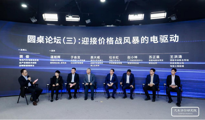 在電動汽車電驅動系統(tǒng)全產業(yè)鏈技術創(chuàng)新戰(zhàn)略聯(lián)盟理事長貢俊的主持下,中國科學院電工研究所主任、研究員溫旭輝,北京理工大學機械與車輛學院教授于會龍,清華大學車輛與運載學院副教授、博士生導師高大威,深藍汽車動力開發(fā)部副總經理杜長虹,廣汽埃安研發(fā)中心電驅系統(tǒng)總監(jiān)趙小坤,極狐電驅動項目研發(fā)總師蘇正杲,博格華納聯(lián)合傳動系統(tǒng)有限公司電驅工程經理王洪濤等嘉賓,圍繞“迎接價格戰(zhàn)風暴的電驅動”這一主題進行了交流討論。