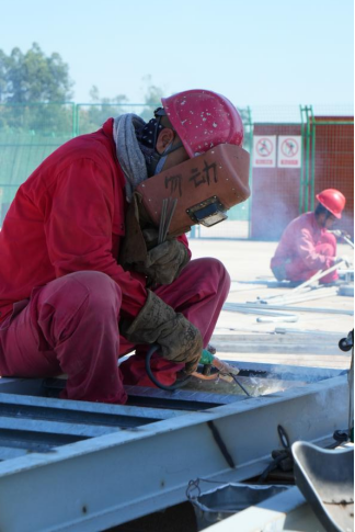 在施工現(xiàn)場,即使“武裝”得嚴嚴實實,但仍能看到不少員工從安全帽下漏出的頭發(fā)已被汗水凝結在一起。一名大汗淋漓的員工說道,“確實是熱,不過還可以接受,干這一行主要是要有責任心,精神集中在工作上就不會感覺那么熱了?!焙怪榈温湓诳尽敖埂钡狞S土地上,成為奮斗最美的注腳。