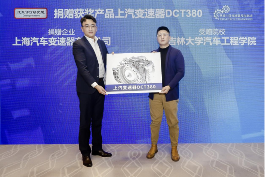 在獲獎名單正式揭曉后,上汽變速器有限公司向吉林大學(xué)汽車工程學(xué)院捐贈了獲獎的上汽變速器DCT380用于教研,助力了汽車產(chǎn)業(yè)創(chuàng)新人才培養(yǎng)和學(xué)術(shù)研究。