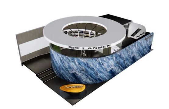 朗生展館以獨(dú)特的“海灣風(fēng)尚”造型,大膽新奇的海灣背景連紋花色,大面曲弧的空間造型,營造出全新的沉浸式空間體驗(yàn)感。