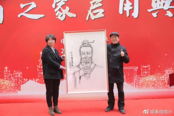 儀式最后,紹興市知名藝術(shù)家林劍華先生向《越商之家》捐贈(zèng)一幅精心創(chuàng)作的中華商圣范蠡肖像畫。