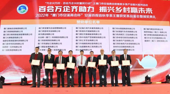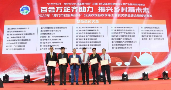 在當(dāng)晚舉行的茶王賽頒獎典禮上,廈門市安溪商會為各位獲獎?wù)哳C獎,為大賽的協(xié)辦和贊助企業(yè)頒發(fā)牌匾和證書。廈門市安溪商會為茶王賽設(shè)置獎金高達(dá)百萬元,大賽的舉辦,得到商會數(shù)十家會員企業(yè)的鼎力支持。