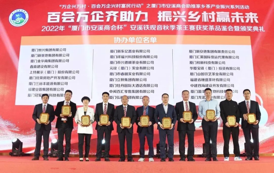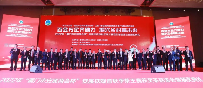 2月24日,由廈門市工商聯(lián)(總商會)、安溪縣人民政府主辦,廈門市安溪商會承辦,中共安溪縣委統(tǒng)戰(zhàn)部、安溪縣茶業(yè)管理委員會辦公室、安溪縣工商聯(lián)協(xié)辦的2022年“廈門市安溪商會杯”安溪鐵觀音秋季茶王賽獲獎茶品鑒會暨頒獎典禮在廈門佰翔五通酒店盛大舉行。本次活動是為了進(jìn)一步落實(shí)廈門市工商聯(lián)和安溪縣人民政府提出的“萬企興萬村·百會萬企興村富民行動”計(jì)劃——廈門市安溪商會助推家鄉(xiāng)茶產(chǎn)業(yè)振興活動,也是“廈門企業(yè)家日”配套活動之一。