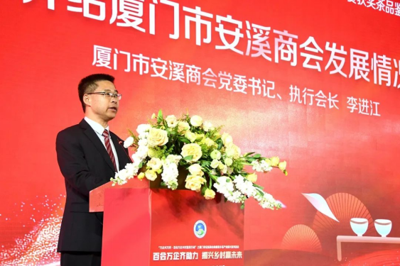 安溪縣縣長劉永強(qiáng)在講話中表示,20多年來,廈門市安溪商會團(tuán)結(jié)帶領(lǐng)在廈鄉(xiāng)親弘揚(yáng)愛拼敢贏、靠自己的骨頭長肉的精神,拼搏商海,盡顯風(fēng)采,在廈門特區(qū)留下了耀眼的茶鄉(xiāng)印記。難能可貴的是商會多年來傾心傾力,支持推動家鄉(xiāng)茶產(chǎn)業(yè)發(fā)展,舉辦“廈門市安溪商會杯”茶王賽已成為規(guī)格最高的安溪鐵觀音茶葉賽事之一,激勵廣大茶農(nóng)茶人傳承匠心、用心制茶,提升安溪鐵觀音的美譽(yù)度和影響力。安溪是世界名茶鐵觀音發(fā)源地,中國烏龍茶之鄉(xiāng),近年來,安溪縣委縣政府緊扣三茶統(tǒng)籌,全面推進(jìn)茶產(chǎn)業(yè)高質(zhì)量發(fā)展。得益于茶產(chǎn)業(yè)的蓬勃發(fā)展,安溪走上了高質(zhì)量發(fā)展快車道,縣域綜合實(shí)力躍升至全國百強(qiáng)縣第53位,投資潛力第11位,已成為高新技術(shù)產(chǎn)業(yè)高地、宜居宜業(yè)的發(fā)展福地。今年,安溪縣委縣政府錨定GDP突破千億,緊扣6個工作抓手,奮力實(shí)施七大行動,加快全面建設(shè)具有茶鄉(xiāng)特色的現(xiàn)代化中等城市。真誠期待廈門市安溪商會和廣大鄉(xiāng)賢以各種方式參與其中,同時竭誠歡迎各界朋友到安溪品茗觀光、投資興業(yè)、共贏未來。
