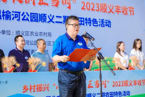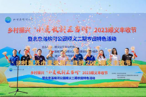 ?? 6月15日,“鄉(xiāng)村振興?小麥?zhǔn)崭钫?dāng)時”2023順義區(qū)豐收節(jié)暨北京溫榆河公園順義二期農(nóng)田特色活動在順義區(qū)后沙峪鎮(zhèn)的溫榆河畔舉辦。