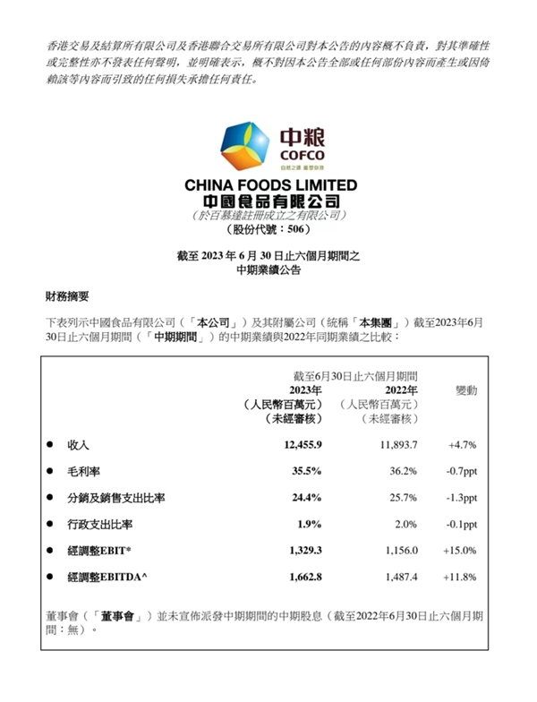 持續(xù)穩(wěn)健與高質(zhì)量增長 中國食品上半年凈利潤10.2億